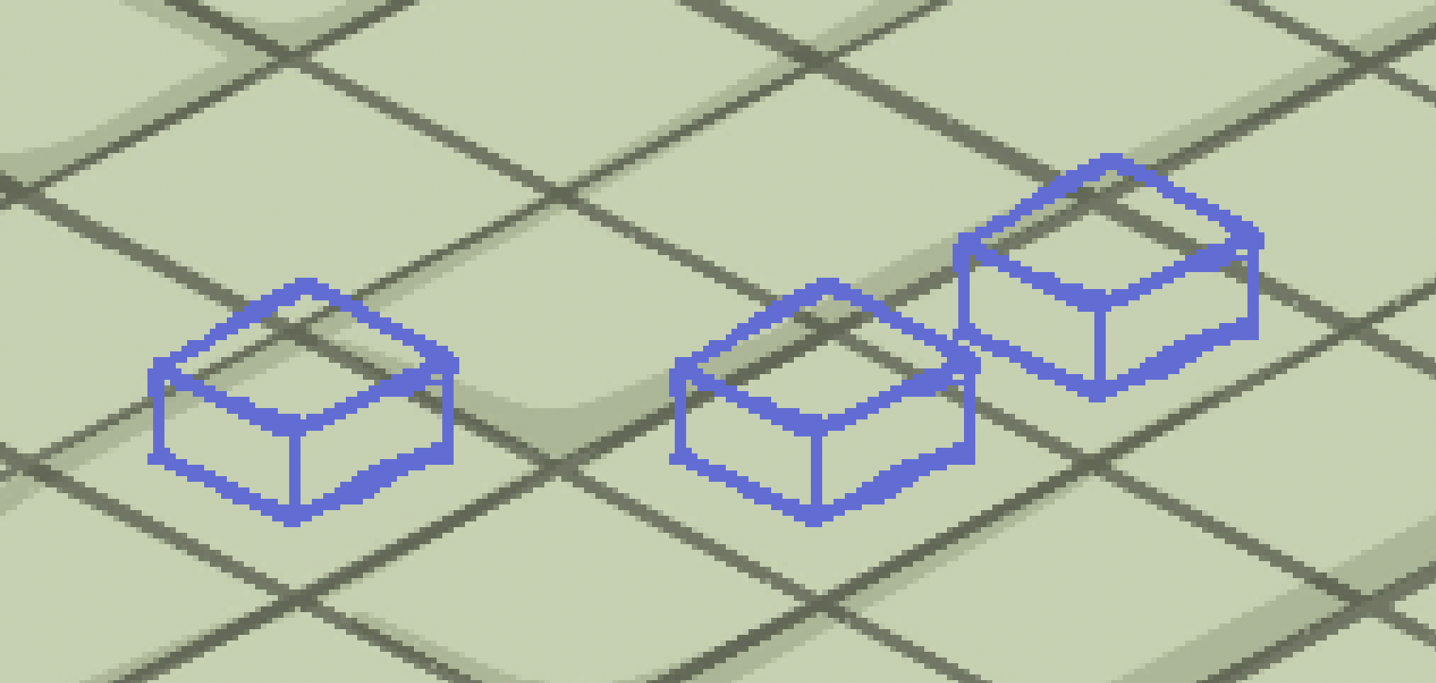 Cover is NOT flush with the edges of the cell it is on. There must be a bit of space surrounding the cover sprite, so that it looks like a diagonal attack could travel between two pieces of cover on diagonal tiles. (Terrible sketch example below.)