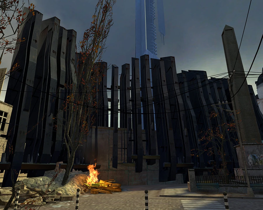 An enormous structure that circles the entire city. Cameras line every inch of its surface, with armed Simulants patrolling the ground around it. The bottom of The Wall is constructed of steel, and continues down into the earth for tens of meters. The upper half of the wall is constructed from concrete, several meters thick. There a three points of entry through the wall, one on the west, one on the north near OLD The Corporation, and one at the sea to the east where OLD The Dock is located. The top of the wall has a gangway where armed Simulants also patrol.