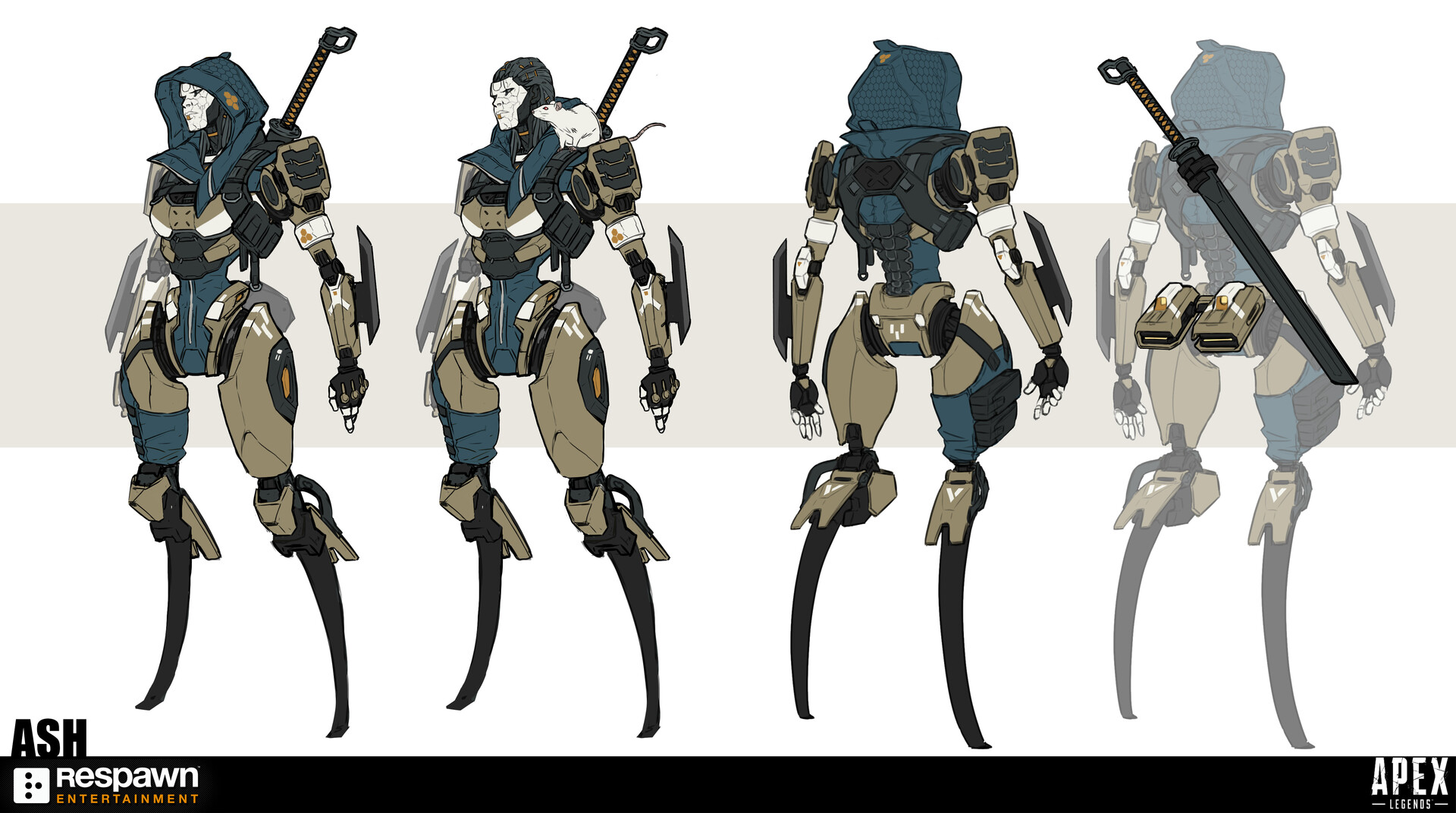 A sleek, aerodynamic black head (looks like a “Time Trial Helmet”) that has a ring of blue lights around the circumference. It’s build is extremely light, no armour is present allowing you to see the exposed hydraulics. Its legs are a pair of running blades, and on the “thigh” of one of the legs is an exhaust pipe that runs to the chassis of the machine.