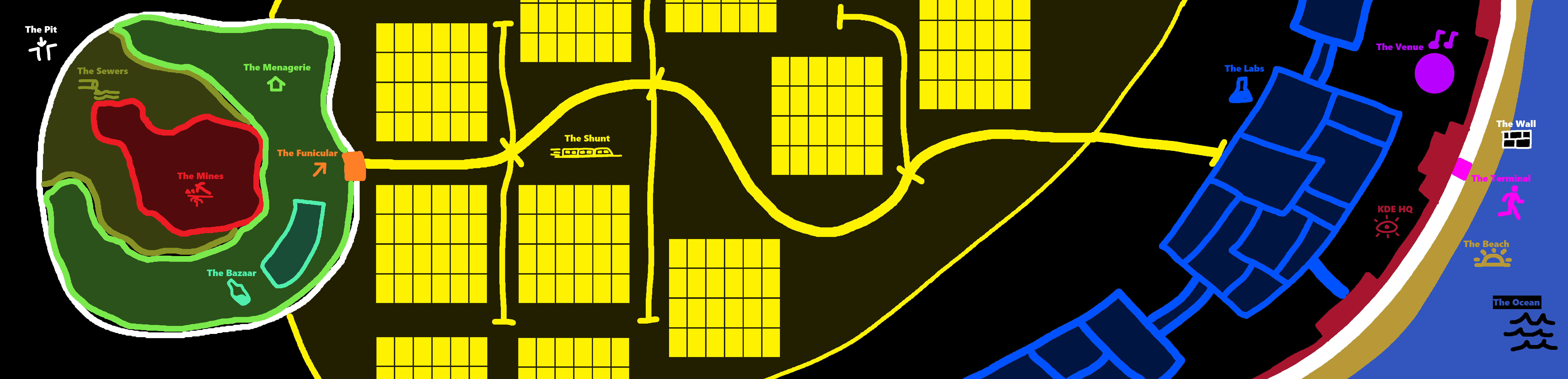 The different regions of New Damascus are split in to different districts. The districts and regions are as follows: