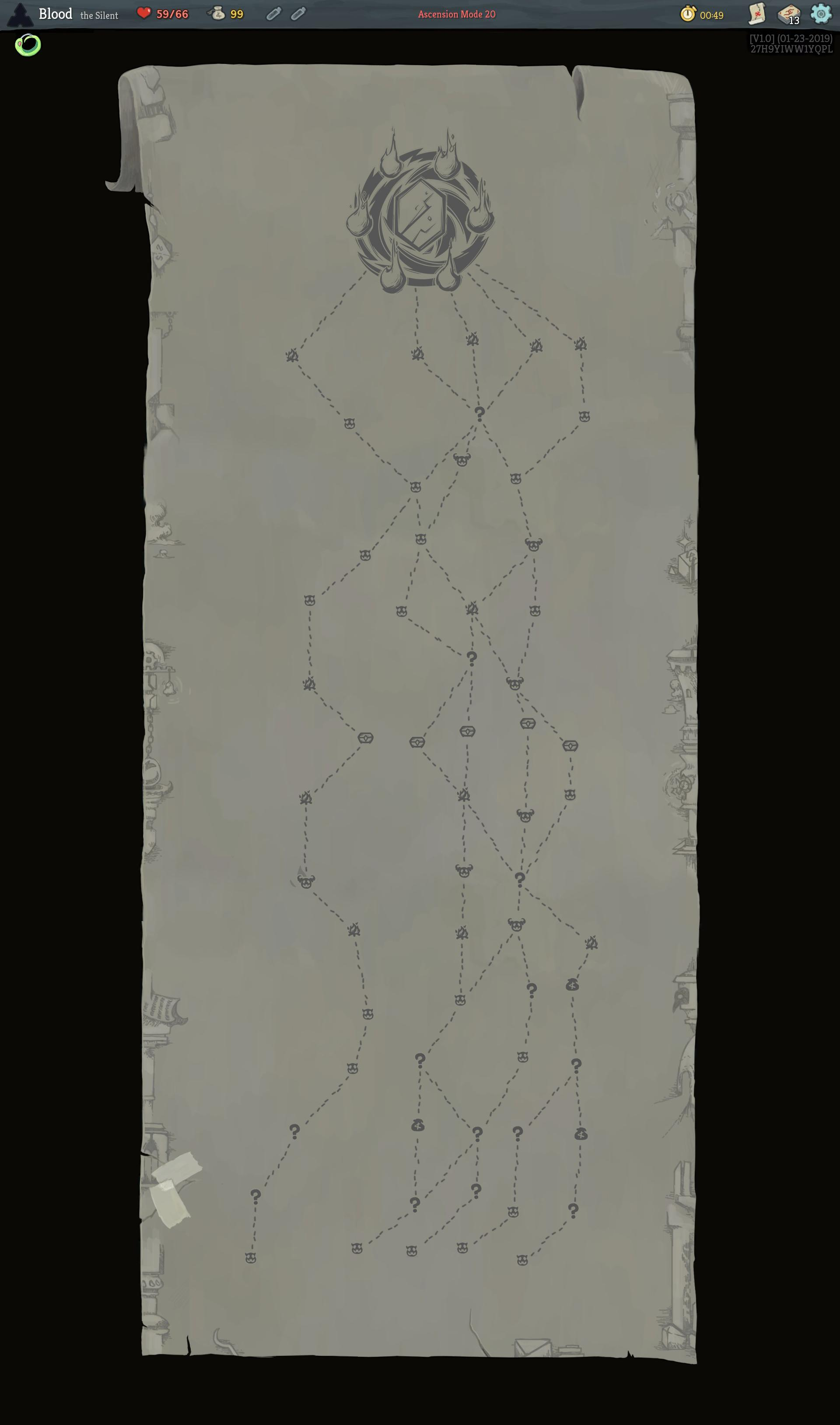 - Rooms have different icons depending on the type of room it is (combat, elite, boss, shop, etc).