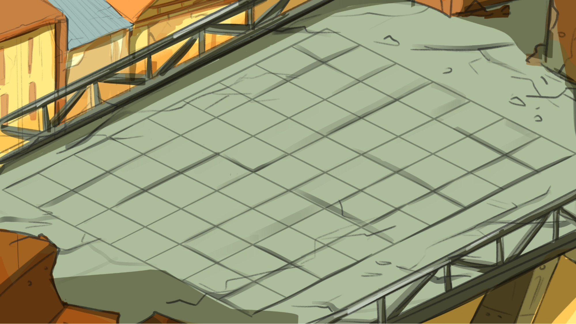 The second district should feel almost abandoned, like the environment has been uncared for and let nature take over. Though due to the large amount of sun and temperature, no greenery return to claim the land, turning it white, bleached, and isolated.