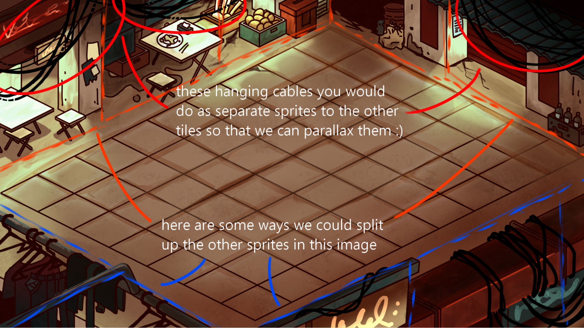 Here’s another example on how you could split up a background into sprites: